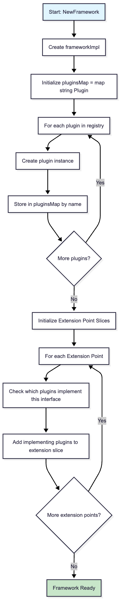 }Here is a flowchart diagram for the kube-scheduler framework initialization flow: