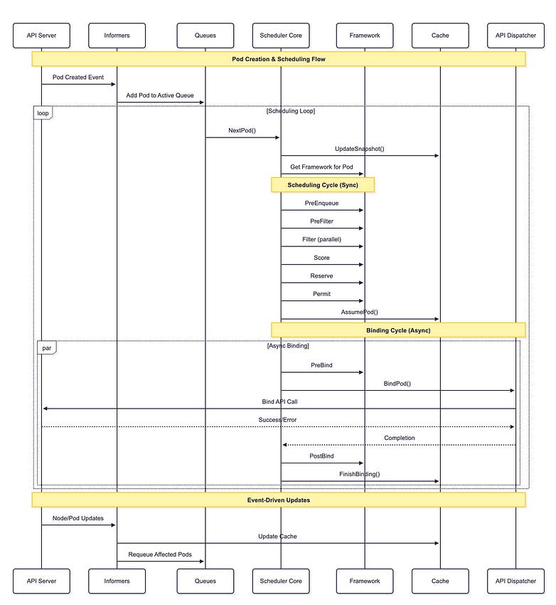 Understanding this architecture is crucial for anyone working with Kubernetes scheduling, whether you’re debugging scheduling issues, writing custom plugins, or simply trying to understand how your pods get scheduled. The framework’s extensibility, combined with the supporting infrastructure’s reliability, makes the scheduler both robust and maintainable.