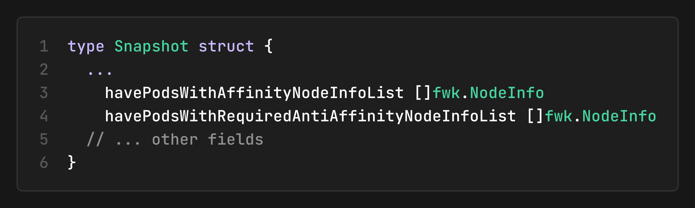 havePodsWithRequiredAntiAffinityNodeInfoList: Pre-filtered list for anti-affinity plugins